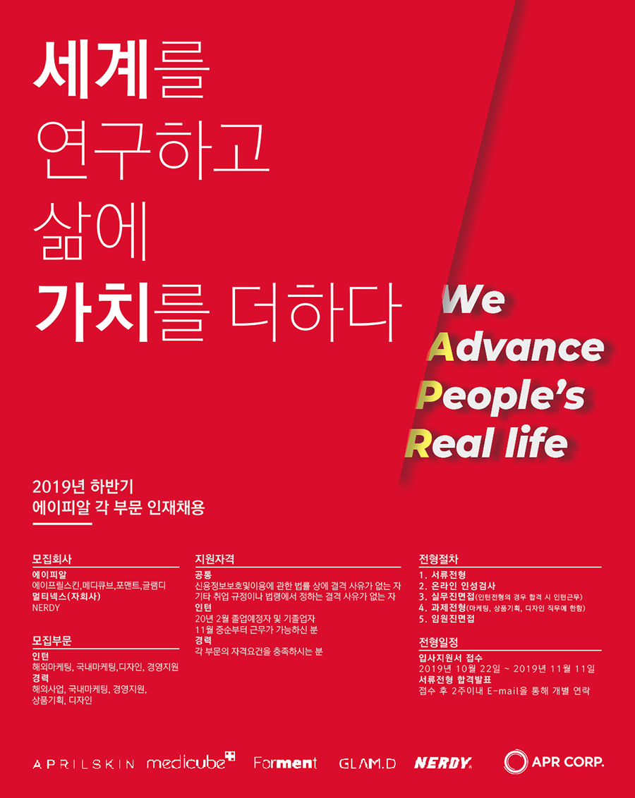 에이피알과 함께 역량을 키워 나갈 귀교 인재 여러분의 많은 지원 바랍니다.